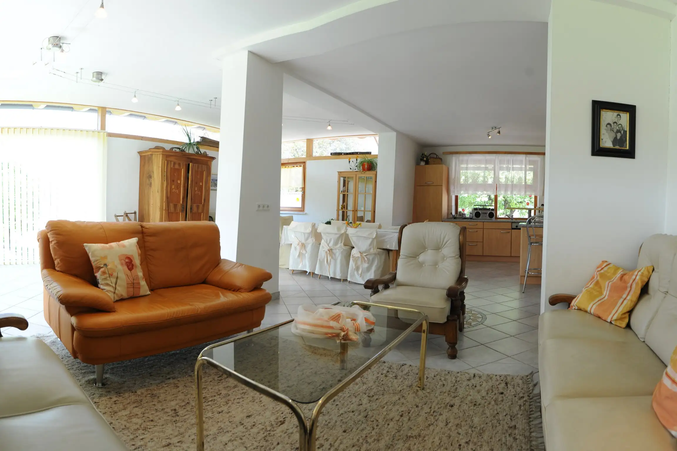 Der helle Wohn- und Essbereich lädt zum gemütlichen Beisammensein ein – ob beim Grillabend im Sommer oder bei einem entspannten Ausklang im Winter.